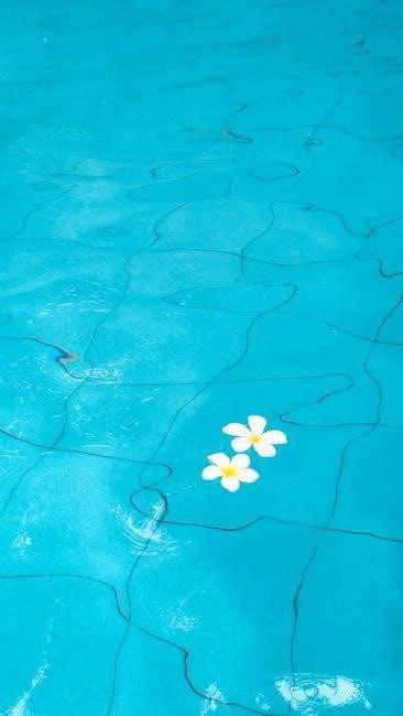Regular cleaning and sanitization are essential for maintaining a safe and hygienic swimming environment. Skim the pool surface daily to remove floating debris and vacuum the floor weekly. Use a pool brush to scrub walls and floors, preventing algae buildup. Sanitize the water by adjusting chlorine or bromine levels, ensuring they remain within the recommended range. Regularly test and balance pH levels to prevent eye irritation and equipment damage. Clean the pool filter according to the manufacturer’s instructions to maintain proper water circulation. Consistent upkeep prevents contamination and extends the pool’s lifespan, ensuring a clean and enjoyable swimming experience for everyone.