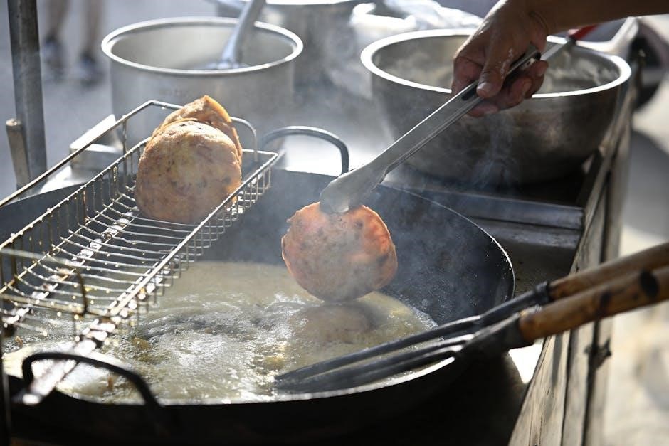 Regularly clean the T-fal Deep Fryer after each use to prevent oil residue buildup․ Use soft brushes or sponges to avoid damaging surfaces․ Dry thoroughly after cleaning to prevent rust․ Always unplug the fryer before maintenance to ensure safety․ Follow the manual’s guidelines for disassembling parts and washing them․ Proper upkeep ensures longevity and optimal performance․ Regular cleaning also helps maintain hygiene and prevents cross-flavor contamination․ Consistent care will keep your fryer functioning like new․ Always refer to the manual for specific cleaning instructions tailored to your model․ By maintaining your fryer, you ensure delicious results every time; Regularly check and replace worn parts to maintain efficiency․ Proper storage after cleaning is also crucial to preserve the fryer’s condition․ Cleaning and maintenance are essential for safety, hygiene, and performance․ Always prioritize these steps to enjoy your T-fal Deep Fryer for years to come․ Regular maintenance prevents unexpected breakdowns and ensures consistent frying results․ Cleaning after each use prevents oil from solidifying and makes the process easier․ Use mild detergents to avoid damaging the fryer’s finish․ Always rinse thoroughly to remove any soap residue․ Proper drying after cleaning prevents rust and ensures the fryer remains in good condition․ Schedule deep cleans periodically to remove stubborn stains or oil buildup․ Follow the manual’s specific instructions for deep cleaning to avoid damaging the appliance․ Regularly check the oil level and filter to maintain frying efficiency․ Replace the oil as recommended to prevent it from becoming rancid․ Cleaning and maintenance are vital for the longevity and performance of your T-fal Deep Fryer․ Always unplug the fryer before starting any cleaning or maintenance tasks to ensure your safety․ Use protective gloves when handling hot or sharp parts․ Follow the manual’s guidelines for disassembling and reassembling components․ Proper cleaning and maintenance ensure your fryer continues to deliver crispy, delicious results․ Regular upkeep also helps prevent the buildup of harmful bacteria and germs․ Always store the fryer in a cool, dry place after cleaning to maintain its condition․ Cleaning and maintenance are simple but crucial steps to keep your T-fal Deep Fryer in excellent working order․ Regular care ensures your fryer remains a reliable kitchen companion for frying your favorite foods․ Always refer to the manual for specific cleaning and maintenance instructions tailored to your T-fal model․ By following these steps, you’ll enjoy consistent performance and delicious results․ Regular cleaning and maintenance are essential for the longevity and effectiveness of your T-fal Deep Fryer․ Always prioritize these steps to keep your fryer in top condition․ Cleaning and maintenance ensure your T-fal Deep Fryer continues to perform optimally for years to come․ Regular care prevents breakdowns and ensures your fryer remains a trusted kitchen appliance․ Always follow the manual’s guidelines for cleaning and maintenance to keep your T-fal Deep Fryer in great shape․ Proper cleaning and maintenance are key to enjoying crispy, golden results every time you use your T-fal Deep Fryer․ Regular upkeep ensures your fryer stays in excellent condition and continues to deliver outstanding performance․ Cleaning and maintenance are simple yet important tasks that keep your T-fal Deep Fryer functioning at its best․ Always make these steps a priority to preserve your appliance’s quality and longevity․ Regular cleaning and maintenance ensure your T-fal Deep Fryer remains a reliable and efficient kitchen tool for all your frying needs․ Always follow the manual’s instructions for cleaning and maintenance to keep your fryer in top working order․ Proper care ensures your T-fal Deep Fryer continues to provide delicious, crispy results for years to come․ Regular cleaning and maintenance are crucial for the longevity and performance of your T-fal Deep Fryer․ Always unplug the fryer before cleaning to ensure your safety․ Use gentle cleaning products to avoid damaging the surfaces․ Dry the fryer thoroughly after cleaning to prevent rust․ Regular maintenance prevents the buildup of residue and keeps your fryer in great condition․ Always refer to the manual for specific cleaning and maintenance instructions․ Proper care ensures your T-fal Deep Fryer continues to deliver exceptional frying results․ Regular cleaning and maintenance are essential for the optimal performance and longevity of your T-fal Deep Fryer․ Always prioritize these steps to preserve your appliance’s quality․ Cleaning and maintenance ensure your T-fal Deep Fryer remains a trusted and reliable kitchen companion for all your frying needs․ Regular care prevents breakdowns and ensures consistent results․ Always follow the manual’s cleaning and maintenance guidelines to keep your fryer in excellent condition․ Proper upkeep ensures your T-fal Deep Fryer continues to function optimally for years to come․ Regular cleaning and maintenance are vital for the longevity and performance of your T-fal Deep Fryer․ Always unplug the fryer before cleaning to ensure safety․ Use soft brushes or sponges to avoid scratching the surfaces․ Dry the fryer thoroughly after cleaning to prevent rust․ Regular maintenance prevents oil buildup and keeps your fryer in great shape․ Always refer to the manual for specific cleaning instructions tailored to your model․ Proper care ensures your T-fal Deep Fryer continues to deliver crispy, delicious results․ Regular cleaning and maintenance are crucial for the performance and longevity of your T-fal Deep Fryer․ Always prioritize these steps to preserve your appliance’s quality․ Cleaning and maintenance ensure your T-fal Deep Fryer remains a reliable and effici