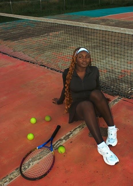 Mastering the scoring system is essential for beginners to understand game progression. Start with basic terms like 15, 30, and 40, which represent points won. A game is won by reaching four points, with a two-point lead. Learn about deuce (tied at 40-40) and advantage scenarios. Drills can include calling out scores during practice rallies or simulating game endings to build familiarity. Understanding scoring helps players track progress and communicate effectively during matches. Practice drills focus on scorekeeping accuracy and game flow to prepare for competitive play. This foundational knowledge boosts confidence and ensures smooth gameplay.
